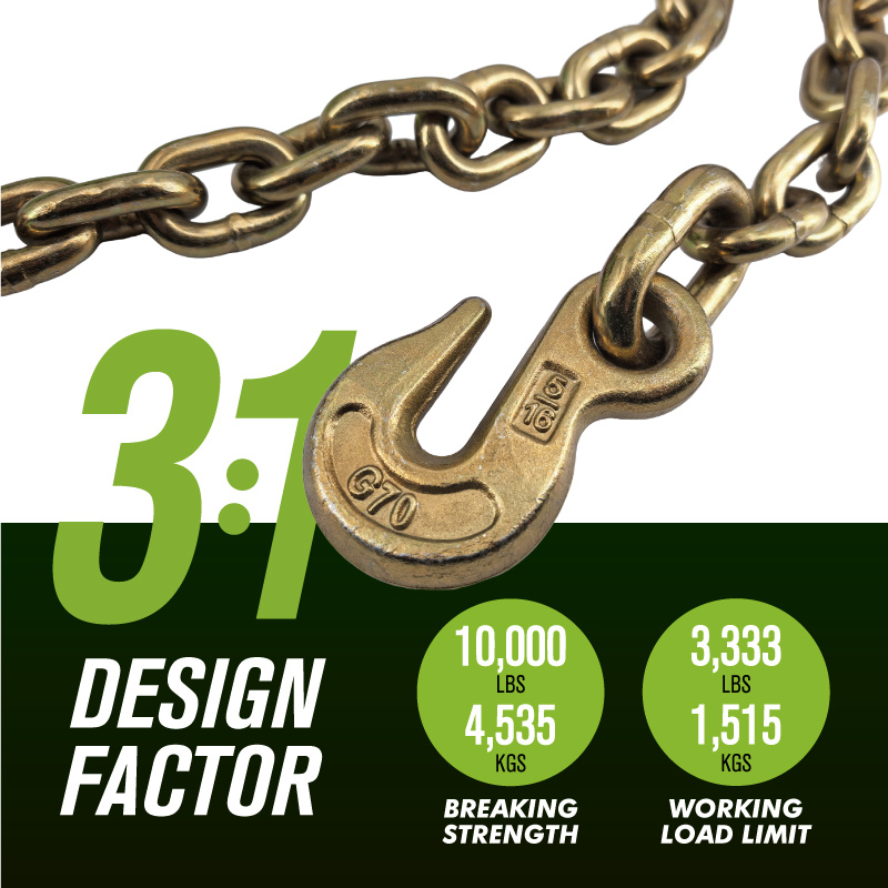 Built for rugged reliability, the GLP 30ft Heavy Duty Ratchet Strap with Chain Hooks (Grade 70 Chain Anchor Grab Hooks) is the workhorse of the towing industry. The compact wire hook design allows for secure attachment in narrow anchor pockets and tight spaces. This is the dependable, go-to solution for everyday securing of construction materials and equipment, offering a perfect balance of high-break strength and effortless operation.