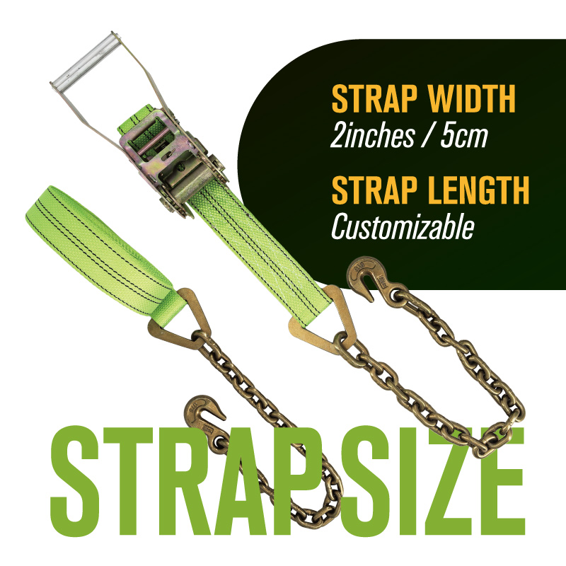 2" x 30' Heavy Duty Tie Down Ratchet Straps with Grade 70 Chain Anchor Grab Hook